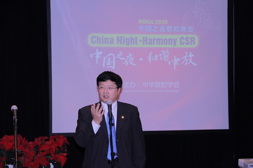 學(xué)會(huì)主任委員郭啟勇教授、候任主任委員馮曉源教授、各位副主任委員,以及GE、西門子、飛利浦、銳柯等公司的中國區(qū)領(lǐng)導(dǎo)悉數(shù)出席,中國之夜共吸引了與會(huì)專家、公司代表以及在美華人放射專家等400余人參與。致辭中,郭啟勇院長(zhǎng)表示,隨著國家經(jīng)濟(jì)的發(fā)展,醫(yī)療需求的增加,中國的醫(yī)療器械市場(chǎng)吸引了世界各地的廣泛關(guān)注。而我們的醫(yī)療科技水平亦不斷攀升發(fā)展,RSNA收錄的中國人論文,從無到有,到今年的176篇,代表著中國影像醫(yī)師在RSNA這個(gè)世界學(xué)術(shù)舞臺(tái)上的話語權(quán)不斷增強(qiáng),我們已經(jīng)從旁觀者變成輕舞飛揚(yáng)的表演者。