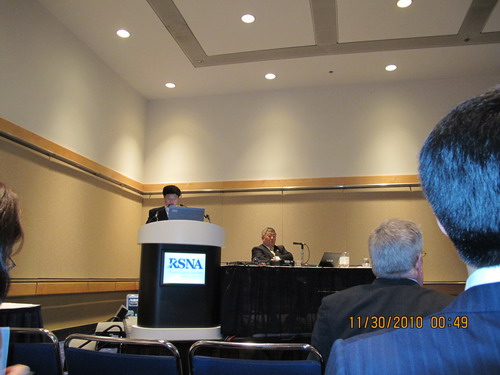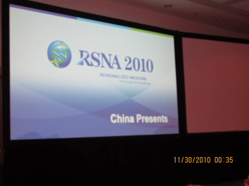 而隨著中國(guó)人參與RSNA人數(shù)的增多,以及研究的發(fā)展進(jìn)步。RSNA的中國(guó)印記愈加明顯。11月29日,一場(chǎng)由中華醫(yī)學(xué)會(huì)放射學(xué)分會(huì)舉辦的專(zhuān)場(chǎng)會(huì)議隆重舉行,這是RSNA首次在科學(xué)會(huì)議中推出的以展現(xiàn)中國(guó)為一題的會(huì)議,內(nèi)容有前列腺癌的磁共振成像、彌散MR加權(quán)成像對(duì)從頭到腳的外周神經(jīng)進(jìn)行成像、嚴(yán)重顱內(nèi)狹窄的支架植入轉(zhuǎn)歸、磁共振成像對(duì)針灸進(jìn)行研究、細(xì)胞移植的MR成像、以及SARS放射學(xué)等,成為世界放射學(xué)界度“中國(guó)印象”的全面深刻解讀。