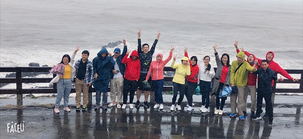 然而上天仿佛看穿了我們的心思,知道我們都想在這片土地上多呆一會兒,離開的前一天,臺風吹向濟州島,大伙冒雨觀看了龍頭巖,美德真心英雄們在雨中留下了珍貴的合影。